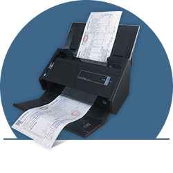 掃描儀把票據(jù)影像化,通過檔案影像系統(tǒng)上傳到云端。